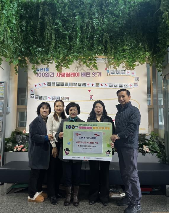 [뉴스노크=김인호 기자] 의정부시 송산1동주민센터는 12월 11일 송산1동 주민자치회가 성금 120만 원을 기탁하며 ‘100일간 사랑릴레이 배턴 잇기’에 동참했다고 밝혔다.