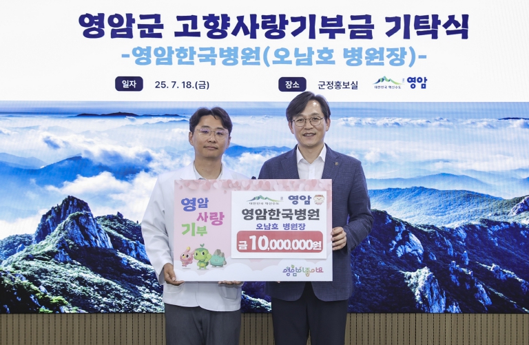 이달 18일 오남호 영암한국병원장이 영암군에 고향사랑기부금 1,000만원을 기탁했다.