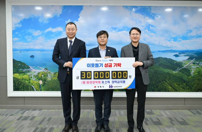 [뉴스노크=김인호 기자] 거제시는 지난 26일, (재)동헌장학회가 관내 저소득 가정 학생들의 학업 지원을 위해 장학금 3,000만 원을 기탁했다고 밝혔다.