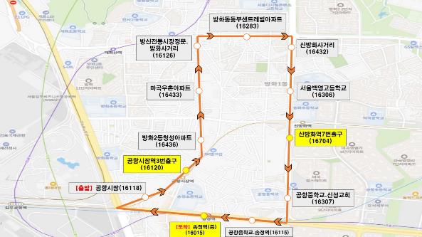 운행 노선은 ▲공항시장역~신방화역~송정역(1번 노선) ▲마곡역~마곡나루역~양천향교역~가양역~발산역(2번 노선) ▲가양역~증미역~염창역~등촌역(3번 노선) ▲화곡역~우장산역~발산역(4번 노선) ▲등촌역~까치산역~화곡역(5번 노선) 등이다.