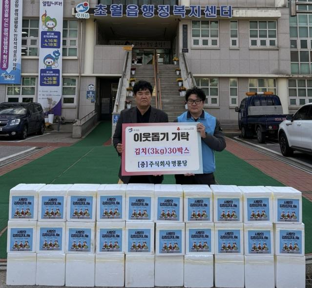 [뉴스노크=김인호 기자] 광주시 초월읍에 소스 제조 공장을 두고 있는 주식회사 명륜당은 지난 21일 김장 김치 30박스를 경기 사회복지공동모금회를 통해 광주시 초월읍에 기탁했다.