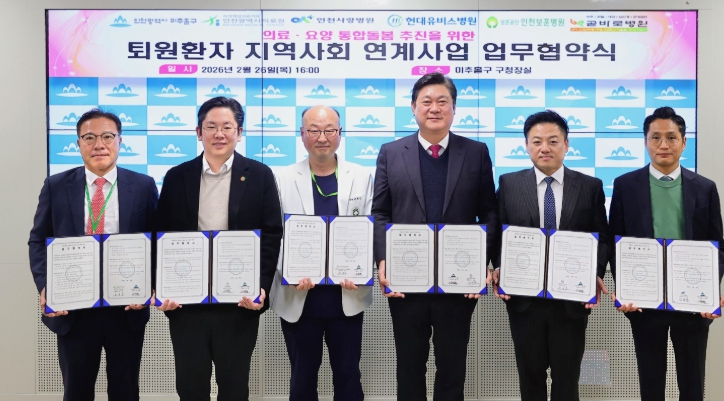 [뉴스노크=김인호 기자] 인천 미추홀구는 지난 26일 지역 내 5개 의료기관과 ‘퇴원 환자 지역사회 연계사업’ 추진을 위한 업무협약을 체결했다.