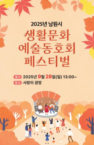 [뉴스노크=김인호 기자] 남원시가 후원하는 2025 남원시 생활문화예술동호회 페스티벌이 9월 28일에 남원 사랑의 광장에서 개최한다.