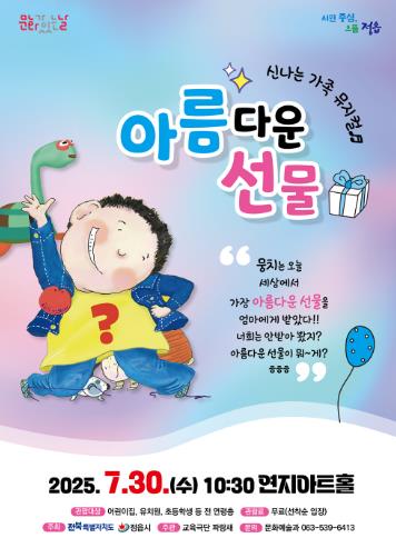 [뉴스노크=김인호 기자] 정읍시가 문화가 있는 날을 맞아 오는 30일 오전 10시 30분, 연지아트홀에서 가족뮤지컬 ‘아름다운 선물’을 무료로 선보인다.