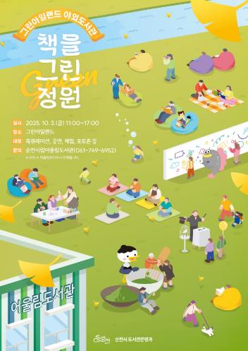 [뉴스노크=김인호 기자] 순천시는 오는 10월 3일 오천그린광장 그린아일랜드에서 가을 야외도서관 '책을 그린(Green) 정원'을 운영한다고 밝혔다.