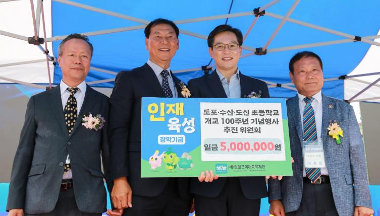 [뉴스노크=김인호 기자] 영암 도포·수산·도신초등학교 100주년 기념행사 추진위원회가 20일 (재)영암군미래교육재단에 인재육성기금 500만원을 전달했다.