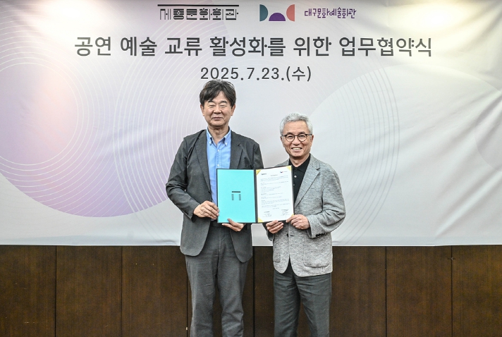 [뉴스노크=김인호 기자] (재)대구문화예술진흥원 대구문화예술회관과 (재)세종문화회관(관장 안호상)은 문화예술 교류 활성화와 국민의 문화 향유 기회 확대를 위해 업무협약(MOU)을 체결했다.