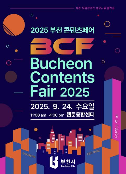 [뉴스노크=김인호 기자] 부천시는 9월 24일 오전 11시 웹툰융합센터에서 ‘2025 부천 콘텐츠페어’를 연다. 이번 행사는 ‘From IP to Industry’를 주제로 우수 콘텐츠 지식재산권(IP)의 비즈니스 확장, 투자유치, 판로개척을 지원하기 위해 마련됐다.