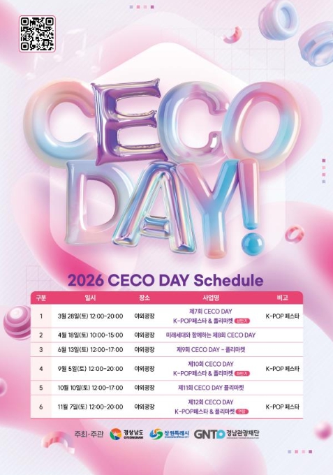 경상남도는 창원특례시, 경상남도관광재단과 함께 CECO 야외광장 활성화를 위한 ‘2026년 CECO DAY’ 행사를 3월부터 11월까지 총 6회에 걸쳐 개최한다고 밝혔다.