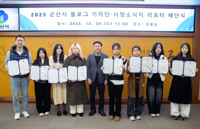 [뉴스노크=김인호 기자] 군산시가 올 한 해 현장 곳곳을 발로 뛰며 생생한 소식을 전한 ‘2025 블로그기자단과 시정소식지 리포터 해단식’을 20일 시청에서 개최했다.