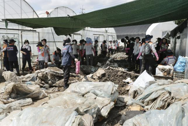 수해 복구 현장에는 지난 21일부터 자원봉사자들이 투입돼 구슬땀을 흘리고 있다. 특히 주말인 26일과 27일에는 군장병과 공무원, 단체‧개인까지 총출동해 5,154명이 수해복구 작업에 참여했다. 지난 21일부터 27일까지 7일 동안 누적 참여 인원은 8,480명에 달한다. 이들은 토사 제거, 폐기물 처리, 침수 주택 정비 등 다양한 분야에서 복구 작업을 지원하고 있다.