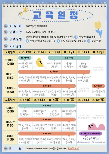 프로그램 관련 자세한 정보와 프로그램 신청은 ‘안양시 통합예약 홈페이지’를 통해 확인 및 예약할 수 있다.