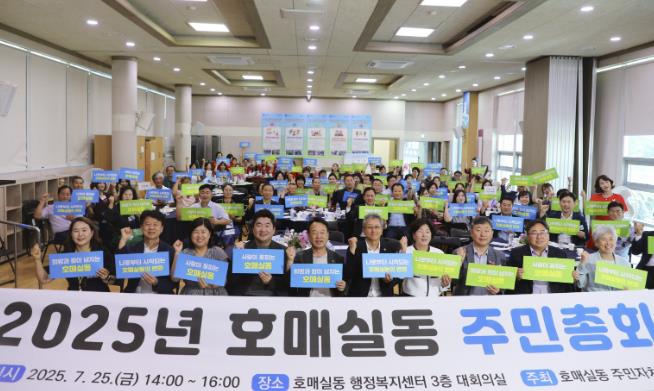 [뉴스노크=김인호 기자] 수원시 권선구 호매실동 주민자치회는 지난 25일, 호매실동 행정복지센터 3층 대회의실에서 주민총회를 개최했다. 이번 총회는 마을 의제를 주민 스스로 제안하고 결정하는 공론의 장으로, 무더위에도 100여 명의 주요 내빈 및 주민들이 참석해 뜨거운 관심을 보였다.