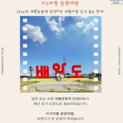 ▲ 광양시, 2025년 개별관광객 인센티브 지원사업 ‘조기 종료’ |