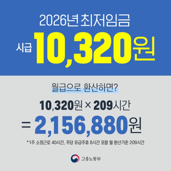 ▲ 2026년 적용 최저임금 인포그래픽 |