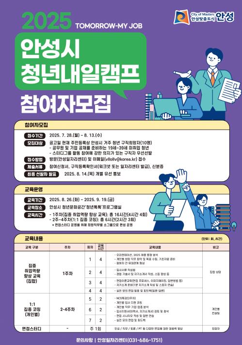 ▲ 2025 안성시 청년내일(Tomorrow, my job)캠프 교육생 모집 |