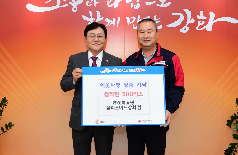 [뉴스노크=김인호 기자] 강화군은 ㈜동북쇼핑 플러스마트(대표 백창헌)가 27일 사회복지공동모금회를 통해 컵라면 300박스를 강화군에 기탁했다고 밝혔다.