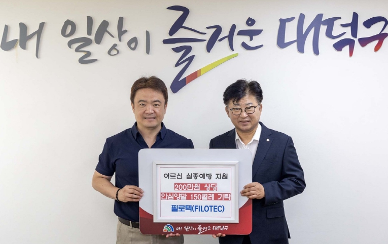 최충규 대덕구청장은 “기술을 통해 실질적인 사회적 약자 보호에 기여한 필로텍의 기탁에 깊이 감사드린다”며 “안심양말이 어르신들의 안전망 역할을 톡톡히 해줄 것으로 기대한다”고 말했다.