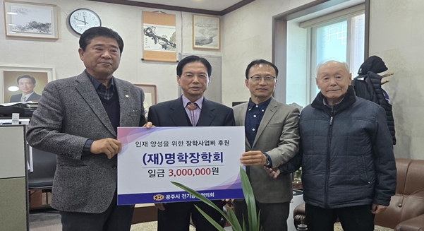 [뉴스노크=김인호 기자] 연말이 되면서 우리 주변에 어려운 이웃을 위한 성금 모금이 한창인 가운데 공주시 전기공사협의회(회장 윤경수)는 지역의 인재 양성을 위한 장학사업비 300만원을 (재)명학장학회에 전달했다.
