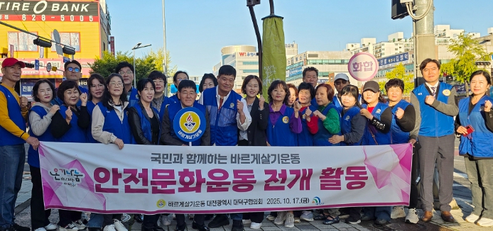 [뉴스노크=김인호 기자] 대전 대덕구는 17일 바르게살기운동 대전대덕구협의회(회장 김광남, 이하 협의회)가 오정네거리 일원에서 바른생활 및 안전문화 캠페인을 전개했다고 밝혔다.