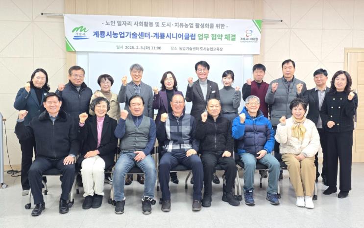 [뉴스노크=김인호 기자] 충남 계룡시는 3일 농업기술센터와 계룡시니어클럽이 노인 일자리 및 도시․치유농업 활성화를 위한 업무협약을 체결했다고 밝혔다.