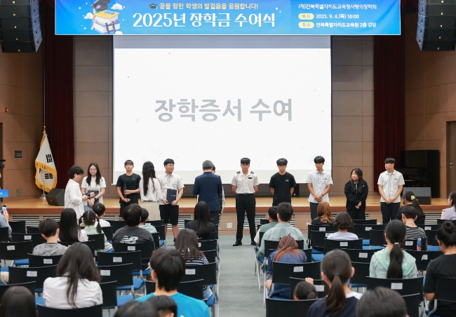 특히 전북교육청은 학업우수 장학금의 경우 학생들의 학업성취도 향상과 발전가능성을 독려하기 위해 1·2차로 선발, 9월과 12월 장학금을 지급한다.