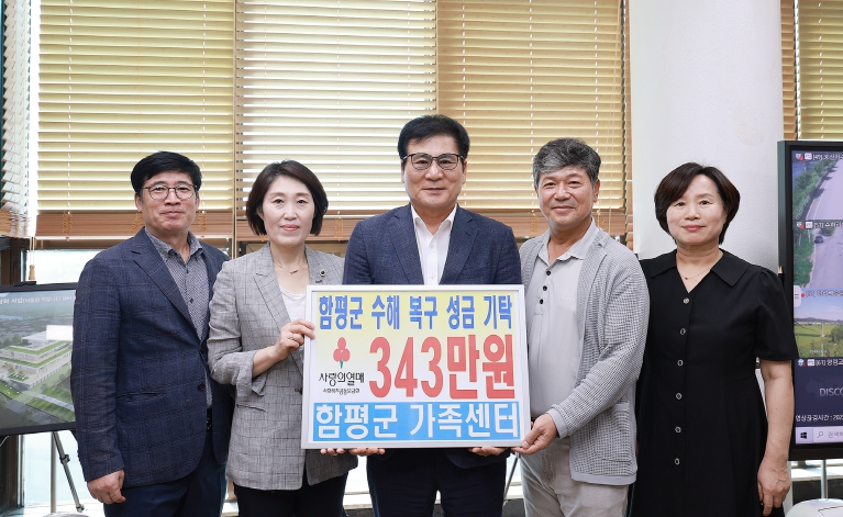 함평군은 5일 “함평군가족센터가 지난 3일 수해 피해 주민을 돕기 위해 성금 342만5천 원을 기탁했다”고 밝혔다.