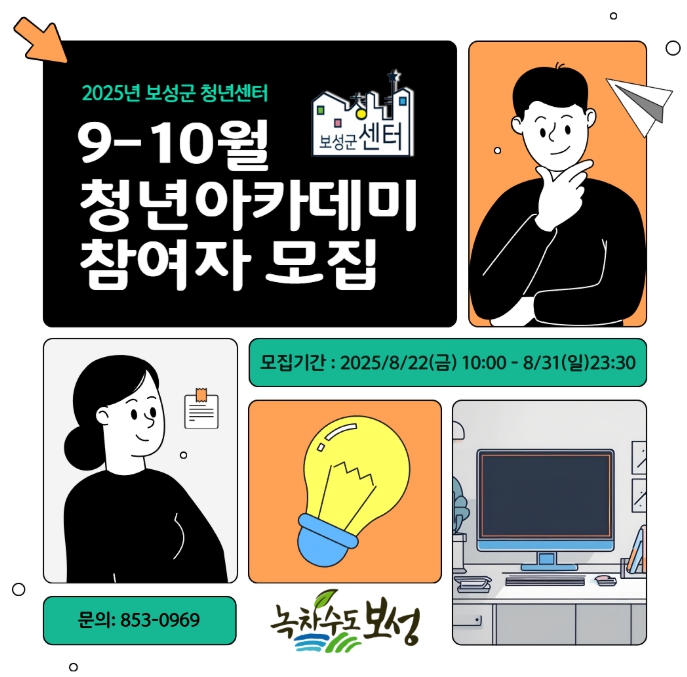 ▲ 지역 청년이 강사로, 미래는 AI로! 보성군, 청년 역량 강화 본격 시동_9~10월 청년아카데미 참여자 모집 포스터 |