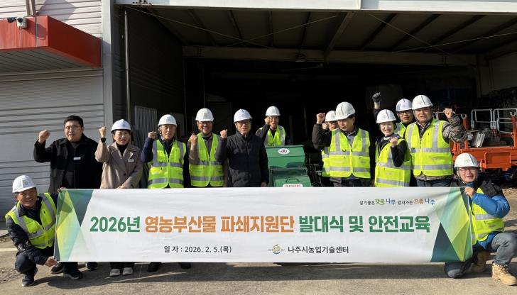 [뉴스노크=김인호 기자] 전라남도 나주시는 지난 5일 영농부산물 파쇄지원단 발대식을 하고 사업 추진을 위한 안전교육과 장비 점검 등 본격적인 운영 준비를 마쳤다.