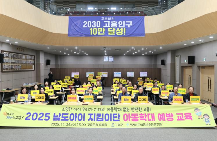 [뉴스노크=김인호 기자] 고흥군은 지난 26일 고흥군청 우주홀에서 이장과 아동업무 담당자를 대상으로 ‘2025년 남도아이 지킴이단 아동학대 예방교육’을 실시했다고 밝혔다.