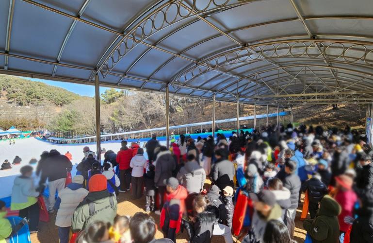 | ▲ 무봉산청소년수련원 눈썰매장에서 눈썰매를 타기 위해 기다리는 이용객들 모습 |