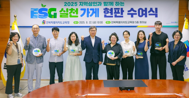전북교육청은 22일 본청 5층 회의실에서 ‘지역상인과 함께하는 ESG 실천가게 현판 수여식’을 개최했다.