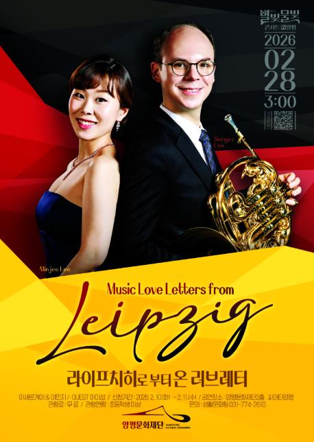 [뉴스노크=김인호 기자] 양평문화재단은 오는 28일 오후 3시, 양평문화재단 2층 시어터양평에서 ‘별빛물빛 콘서트 in 양평’ 2월 정기공연으로 클래식 공연 《라이프치히로부터 온 러브레터(Music Love Letters from Leipzig)》를 선보인다.