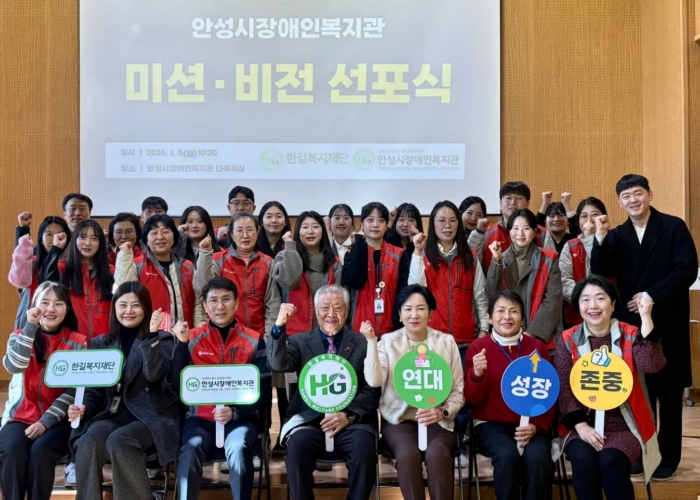 [뉴스노크=김인호 기자] 사회복지법인 한길복지재단에서 수탁하고 있는 안성시장애인복지관은 지난 5일 직원과 복지관 이용자 대표 등이 참석한 가운데 향후 5개년(2026년~2030년)의 새로운 중장기계획을 발표하는 ‘미션·비전 선포식’을 개최했다.