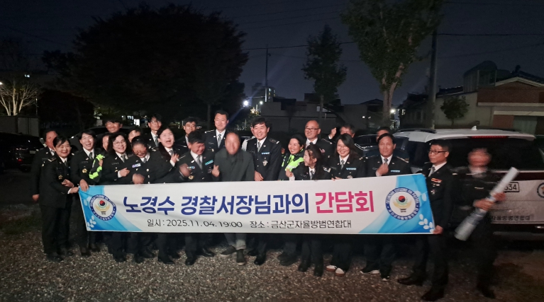 [뉴스노크=김인호 기자] 금산경찰서는 2025년 11월 4일 금산읍 아인리에 위치한 자율방범연합대 사무실에서 금산군 자율방범연합대와 간담회를 개최했다.
