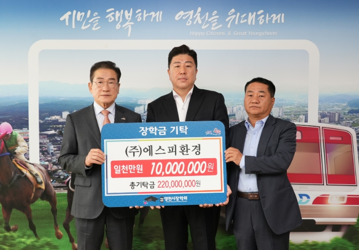 [뉴스노크=김인호 기자] 영천시는 21일 ㈜에스피환경에서 장학금 1,000만원을 영천시장학회에 기탁했다고 밝혔다.