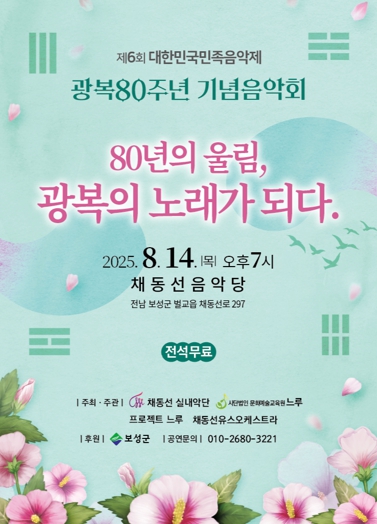 [뉴스노크=김인호 기자] 보성군은 오는 14일 저녁 7시, 벌교 채동선음악당에서 광복 80주년 기념음악회 ‘벌교의 교향시, 벌교 칸타타’가 개최된다고 밝혔다.