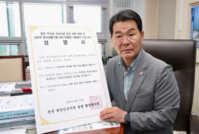 [뉴스노크=김인호 기자] 전국원전인근지역 동맹행정협의회가 11일 정부의 고준위 방사성폐기물 관리 특별법 시행령 제정 추진과 관련해 해당 시행령에서 규정한 원전 주변지역의 범위를 5km에서 30km로 확대해 줄 것을 촉구했다.