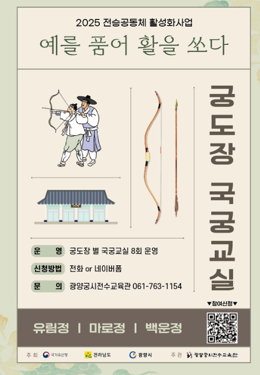 김철호 광양궁시전수교육관장은 “활쏘기는 몸과 마음을 다스리는 전통문화로서 예(禮)의 중요성을 체득할 수 있는 훌륭한 교육 콘텐츠”라며, “이번 프로그램이 시민과 학생 모두에게 활쏘기 전통의 가치를 새롭게 전할 수 있는 계기가 되길 바란다”고 말했다.