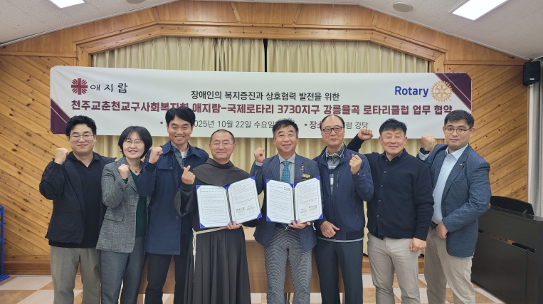 [뉴스노크=김인호 기자] ‘강릉장애인자립통합지원센터’와 ‘국제로타리 3730지구 강릉율곡 로타리클럽’(회장 이용기)은 지난 22일(수) 장애인의 복지증진을 위한 다양한 활동을 협조하고 건강한 사회를 조성하고자 업무협약(MOU)을 체결했다.