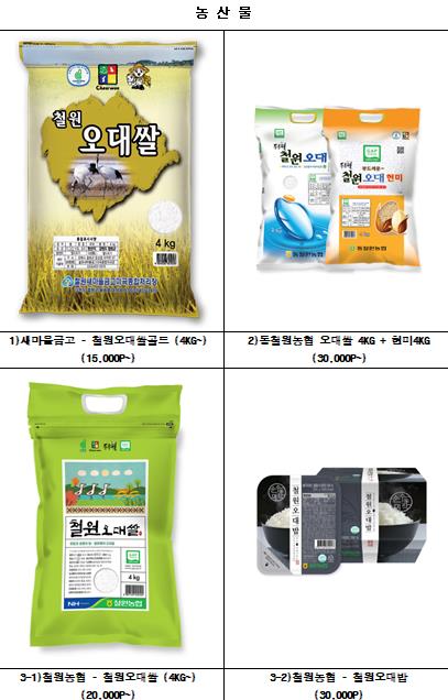 쌀(동송·김화·철원·동철원농협미곡 등)과 사과(화강황토), 뽕잎, 쌀가공식품(호빵·벼알빵), 요거트, 꿀, 주류, 여주·모링가, 육류, 만두 등 다양한 품목을 18개 공급업체와 협력해 제공 중이다.