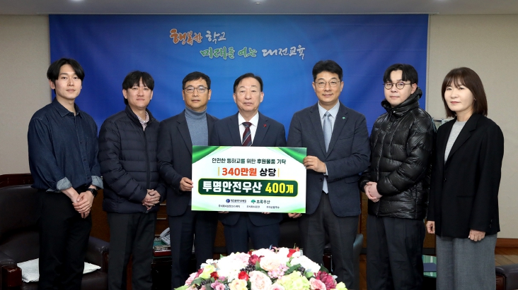 [뉴스노크=김인호 기자] 대전시교육청은 12월 8일 초록우산 대전지역본부로부터 340만원 상당의 투명안전우산 400개를 전달받았다고 밝혔다.