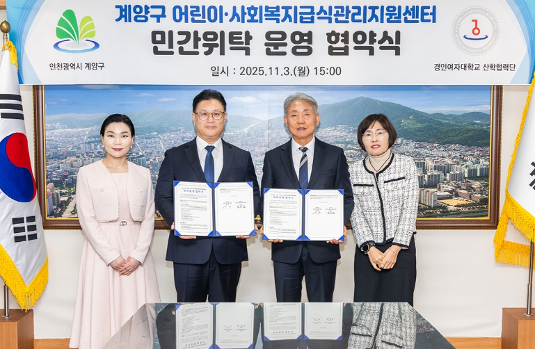 [뉴스노크=김인호 기자] 인천광역시 계양구는 11월 3일 경인여자대학교 산학협력단과 계양구 어린이·사회복지급식관리지원센터 민간위탁 운영 협약을 체결했다.