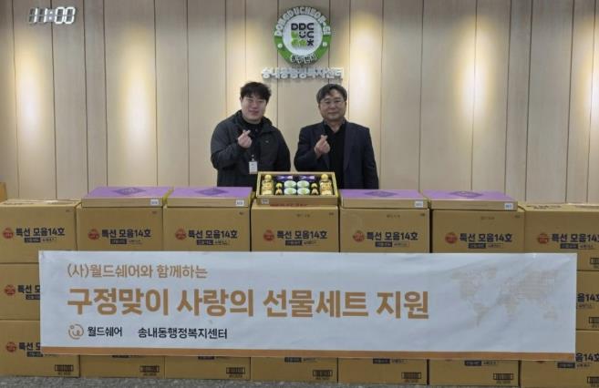 임은승 송내동장은 “월드쉐어의 따뜻한 나눔 덕분에 어려운 이웃들이 풍성한 명절을 보낼 수 있게 됐다”라며“후원 물품은 관내 복지 사각지대 및 취약계층에 골고루 전달해 추운 겨울 따뜻한 명절을 보낼 수 있도록 하겠다”라고 전했다.