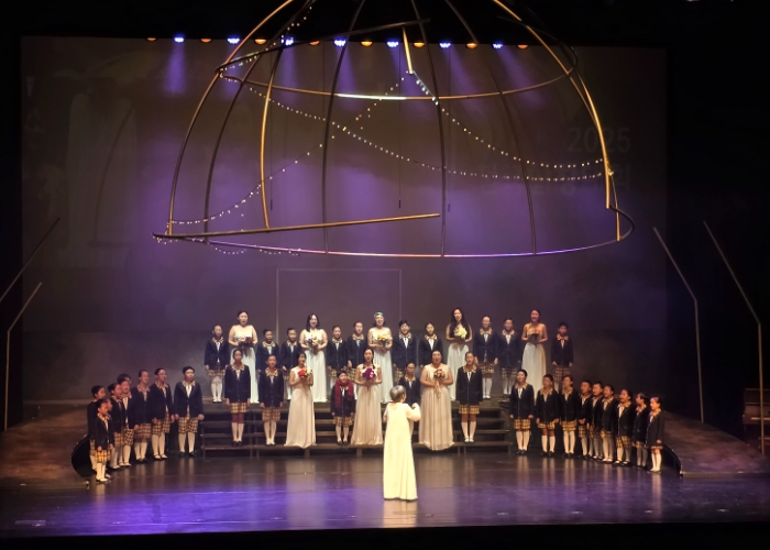 ▲ 뮤지컬의 하이라이트 전국합창대회 장면에서 하모니합창단이 죠이풀어린이합장단과 함께 노래하고 있다. |