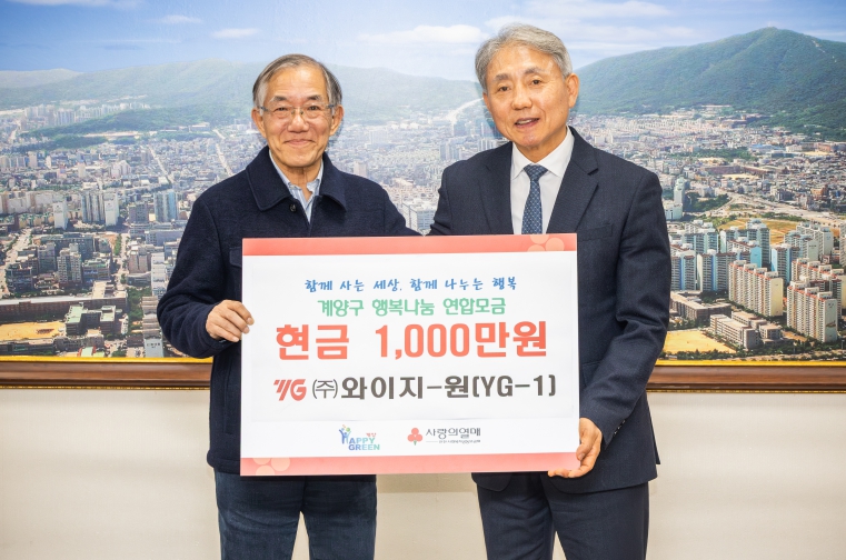 [뉴스노크=김인호 기자] 인천광역시 계양구는 ㈜와이지-원(YG-1)이 지역사회 취약계층을 지원하기 위해 1,000만 원을 기탁했다고 5일 밝혔다.