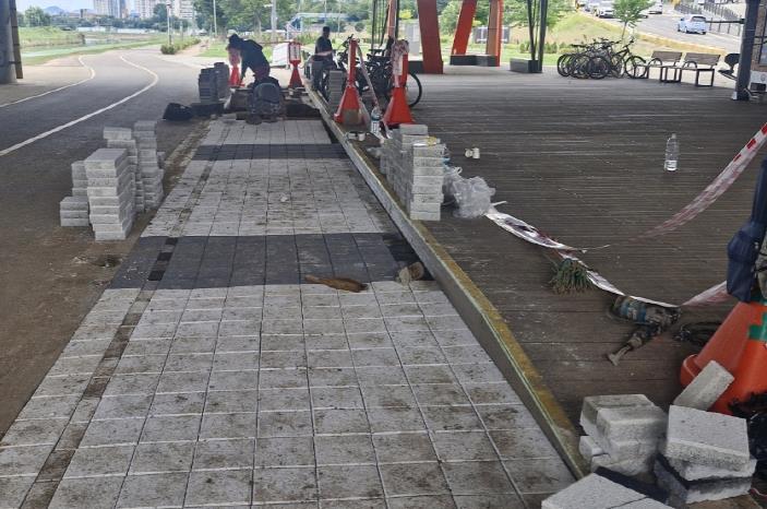 이후 쉼터 주변 유실된 보도블록 정비를 완료했고, 침수 피해로 뽑히거나 훼손된 운동기구, 안내판 등의 쉼터 시설물을 재설치해 안전사고가 발생하지 않도록 최선을 다했다.