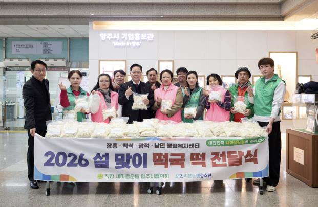 이날 직장·공장 새마을운동 양주시협의회와 참여 봉사 단체는 떡 총 100kg를 준비해 취약계층 가구 지원을 위해 백석읍, 남면, 광적면, 장흥면에 각 25kg씩 전달하며, 지역사회에 온정을 나눴다.