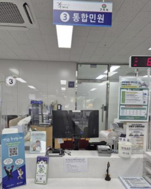 ▲ 구리시 전입신고 창구에 설치된 1인가구 정책안내 미니배너와 리플렛 |