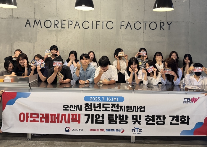 [뉴스노크=김인호 기자] 오산시는 7월 16일, 청년도전지원사업의 일환으로 중기 프로그램(15주 과정) 참여자들과 함께 오산시 관내 우수기업인 ‘인터코스코리아’와 ‘아모레퍼시픽’을 방문하여 기업 탐방 및 현장 견학을 진행했다.